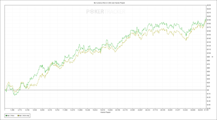 BB: $3.35 (VPIP: 16.67, PFR: 13.89, 3Bet Preflop: 36.36, Hands: 37)
