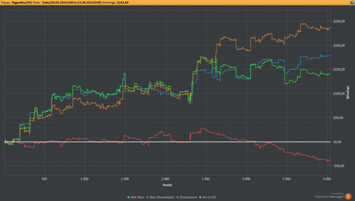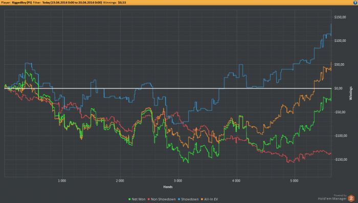 Перед игрой вспомнил вчерашние свои ошибки и сегодня старался их не допускать. Вроде бы даже ни одной серьезной сдачи я по какой-то ошибке не проиграл.