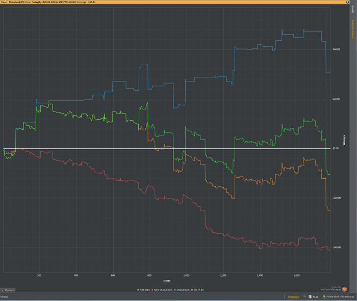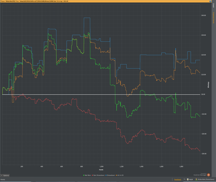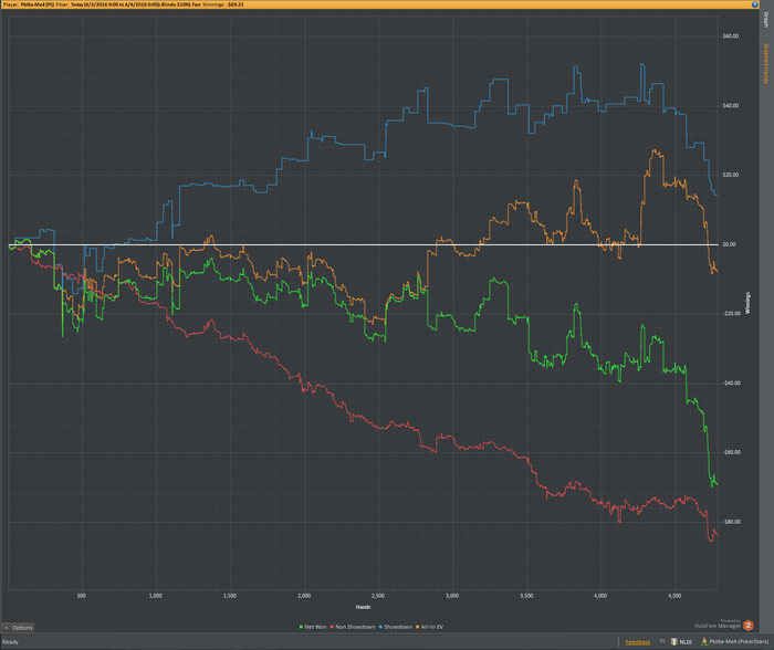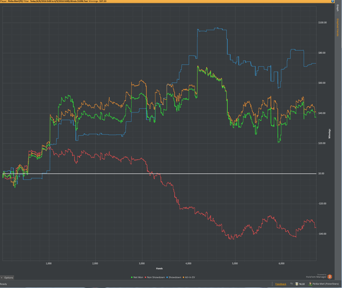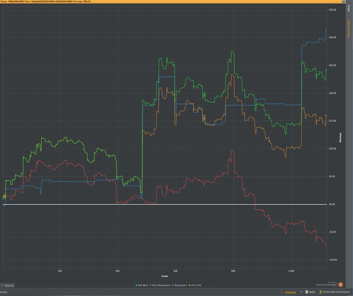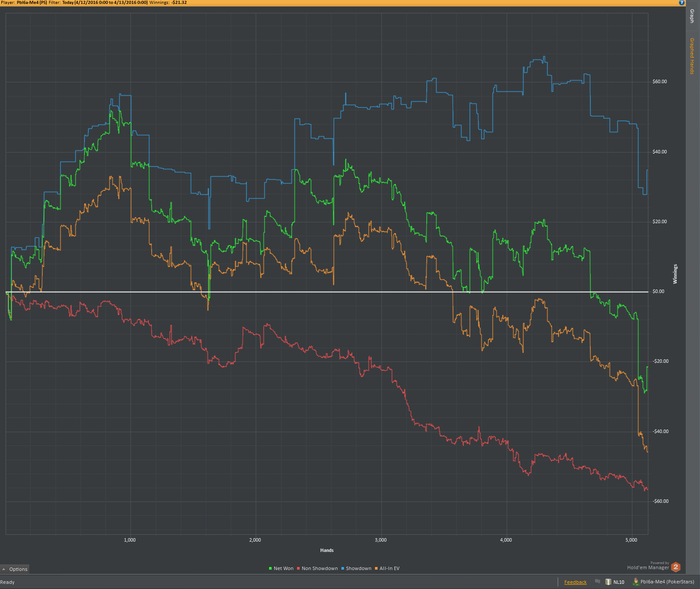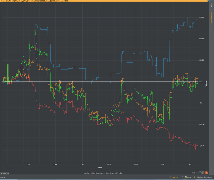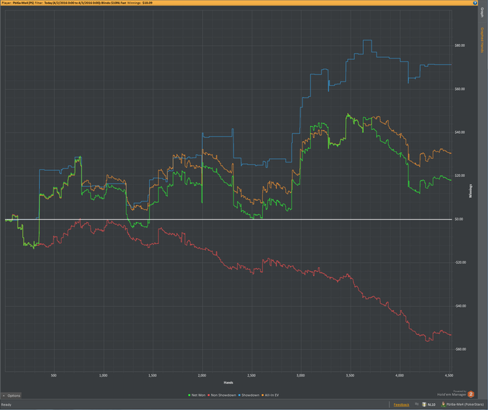 Теперь минусы: 1) Теория. Задумка по разбору раздач не пошла, как я хотел бы - разбирал слишком мало, и только в начале месяца. С просмотром видео тоже все быстро загнулось, в том числе из-за того, что я просыпался всегда в разное время и плана на день как такового не было. 2) Качество игры было невысоким, и это вытекает из минуса номер 1.
