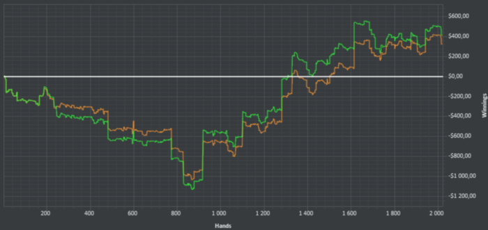 ну да , я согласен с тобой , у меня сейчас как раз основная задача это избавится от грубых ошибок ( грубые для меня сейчас это когда я не правильно оценил диапазоны), если не будет получаться спущусь на соточку , вариантов больше нет.. Ну местные реги дохера делают ошибок и имеют свои 2-3 бб на сто как они это делают ? пока что я даже близко не дорос до их уровня , буду стараться .