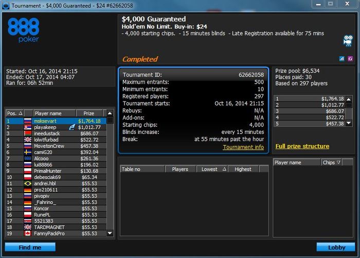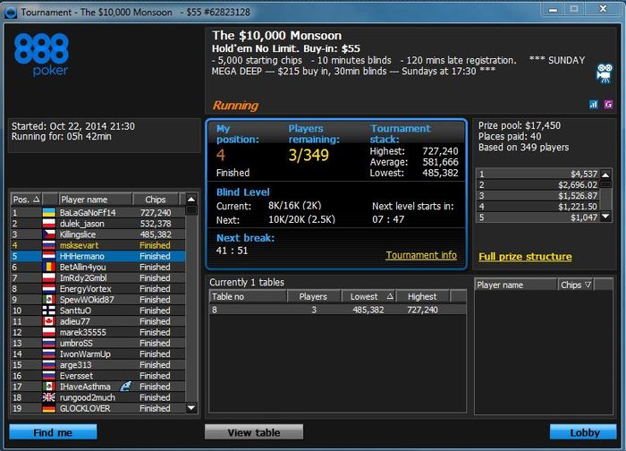 Парни,кто играет на 888,не писали в саппорт,что происходит с ними???Сегодня в бризе имел 22бб,не конектился минут 5 ,захожу осталось 4 bb и это на бабле.Посмотрел потом в хистори,тип один единственный был не в ситауте с12тыс,за это время насобирал тыс 50 со всего стола.Херня какя-то