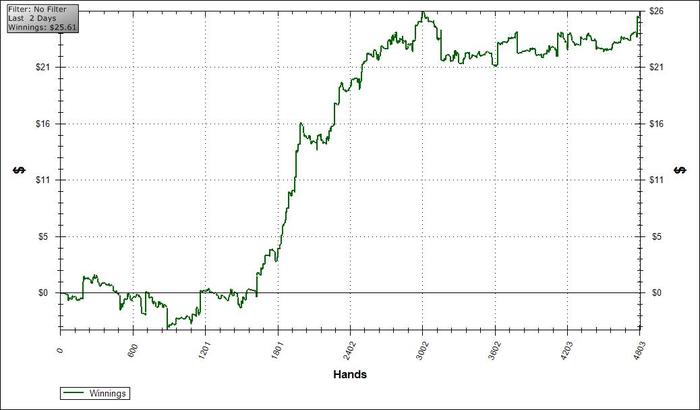 Затем зарегился в обычных столах (5 столов по 80с). И одновременно с просмотром ВСОП начал подниматься. За 2 часа игры очень неплохо поднялся.