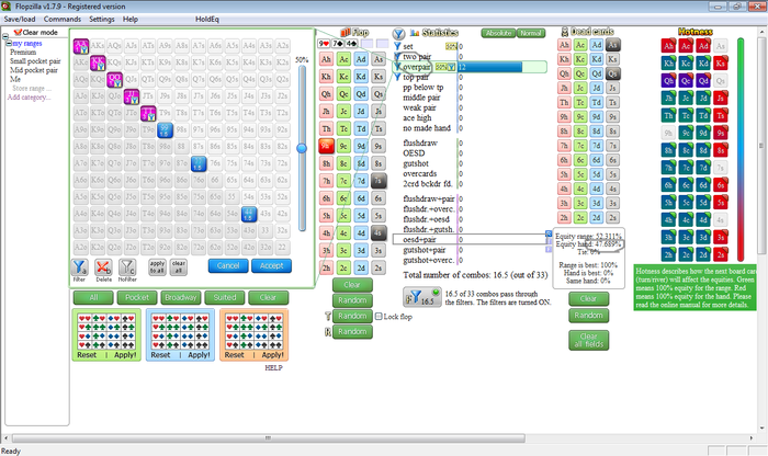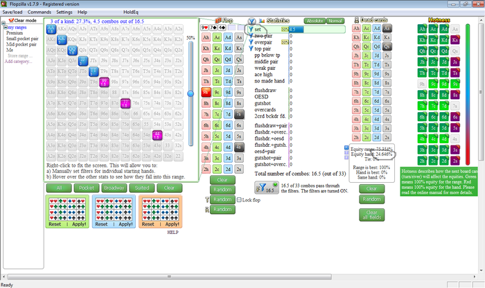 (Pre 57%, Flop 34.7%, Turn 22.7%)