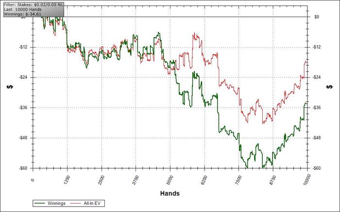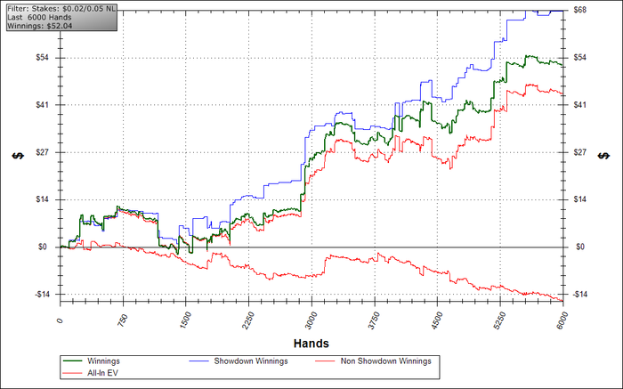 В некотором роде начало появляться чувство игры... не знаю как это точно описать, но это не из разряда чуйки лудоманской "счастливая карта, день, рубашка" не... чувство динамики, сайзингов, слабостей и подстав, и это кайф) Перейдя в кеш и правда по новой открыл для себя покер) ps Хоть логика и намекает на то что на графике апстрик а все ровно ахуена чувствую себя)