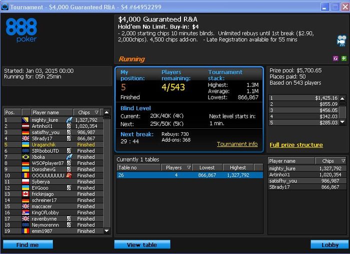 ГГ, сеодня в этом туре я 4-ое занял, обидно ушатали префлоп АА в АКо