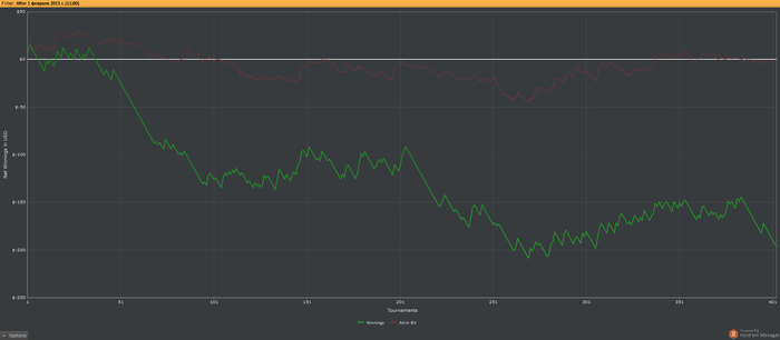 2) придерживаюсь предельно охуительноконсервативного подхода к ведению банкролла: 1000 бай инов на лимит. Собственно с 3500$ и начинаю марафон. Для троек конечно "с запасом", но по мне бай ин так и должен быть мизерно крошечным чтобы не запариваться о деньгах распихивая трибеты на 14 столах с мусором.
