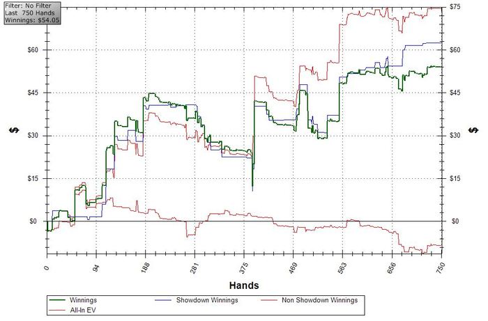 Пс - в этой раздаче же изи фолд? В калькуляторе правильно посчитано? То есть, мы играем банк на троих 5$, где я на дистанции буду зарабатывать 24%, или 1.20$. В него я вкладываю 1.65$ - 0.50$ которые уже вложила. То есть добавить надо 1.15$. Итог +0.05$.