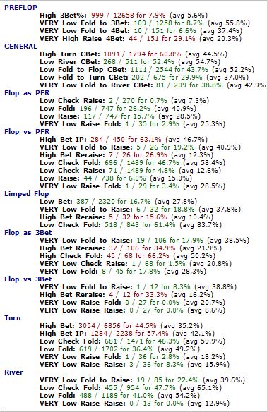 Портянка со статами помогла бы больше. Что кажется напряжным: Префлоп: Фолд на 3бет-очень низкий, наверняка коллируешь руки без гладкого распределения эквити, типа КК62, плохие тузовые руки. Будет минусово. На 4 бет надо рыть руки, которые плохо играют против тузов-почти все большие карманки, тузы с бродвеем. У тебя же фолда на 4бет нет.