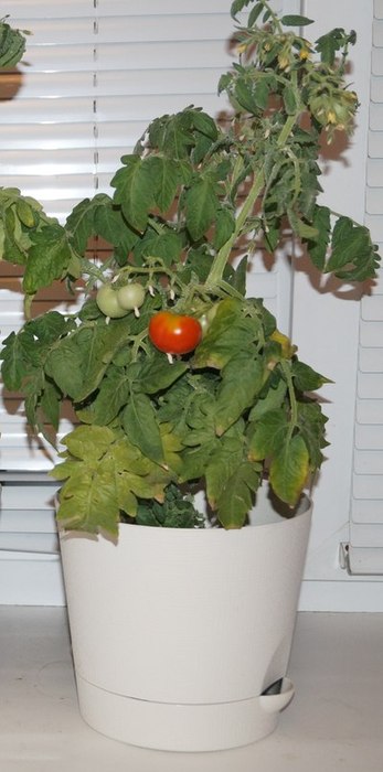 Горшечные цветы - это так не практично! Другое дело овощи. Выращиваю у себя на подоконнике томаты. Такая помидоринка годится на закуску аккурат одной рюмки чистого.