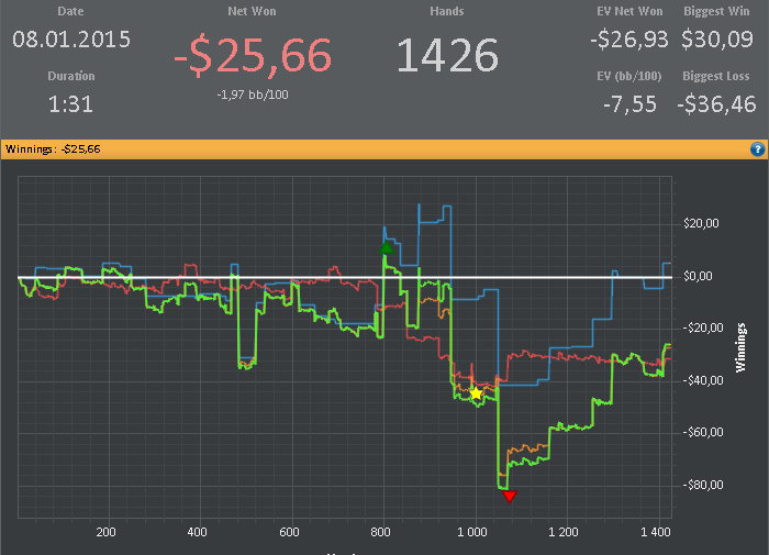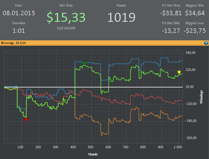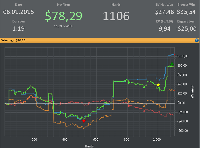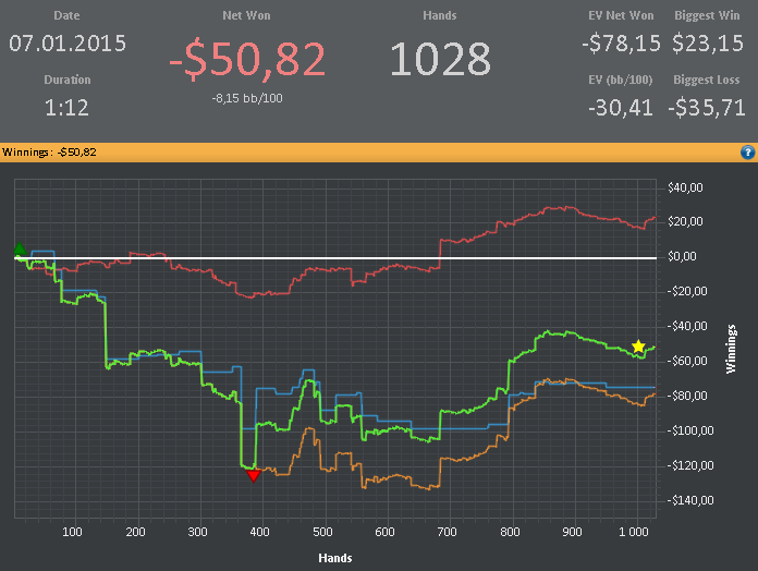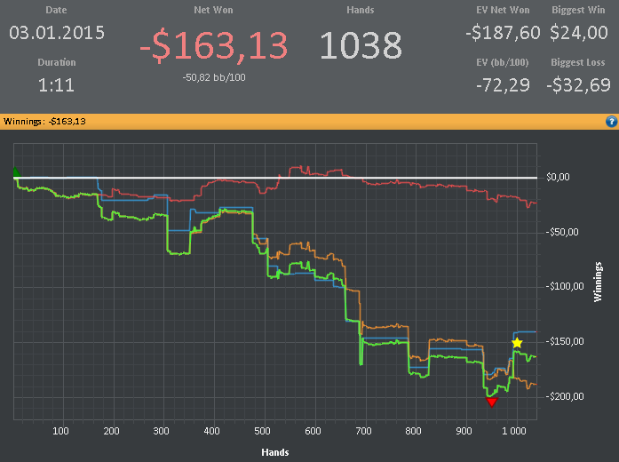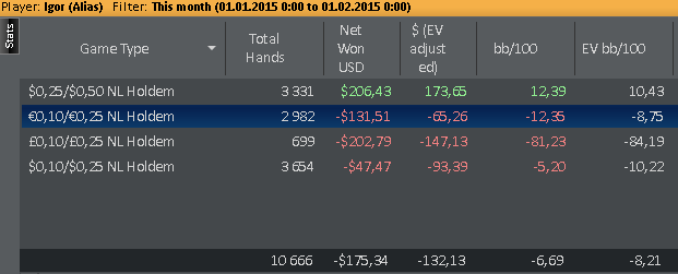 Условия: 1. Отыграть в январе больше 100 000 рук с учетом уже сыгранных. 2. В зачет идут только (NL25 и NL50) & (cash) & (6max) & (регулярные столы) & (Poker Stars и 888). 3. Марафон выполнен, если отыграно количество рук в плюс без рейкбека и кэшбека.