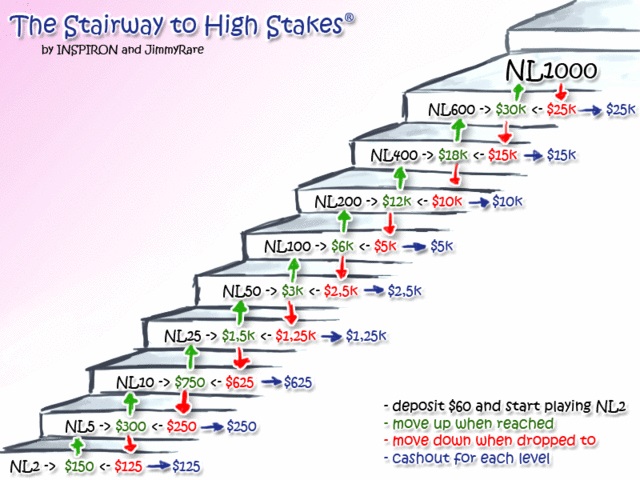 YMBStronG, При переходе было около 400$, но ориентировалась не на БР. Решила перейти после тренировок, так как немного завязла на нл5. А вообще хочу придерживаться примерно такого БР менеджмента (пока без кешаутов). С маленькой поправкой на нл16 (вверх с 480 вниз на нл10 с 400). Сейчас начала нл16 пробовать.