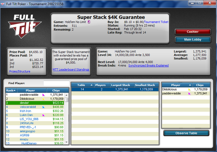 Stacks: UTG dimdaf (88k) 37bb UTG+1 AcesProfit (129k) 54bb MP1 _HuntDjango_ (
