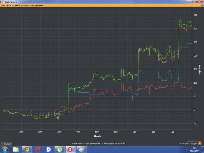 Если бы я отыграл с ХМ все 10К рук, то безусловно считал бы что НЛ5 я бью. Ну с винрейтом в 20бб, мне кажется это оправдано. А без ХМ на той же дистанции 1 бб/100 ))))))))))