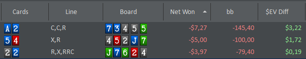Флоп: ($0.10) 4, 5, 2(2 игроков) SB делает бет $0.15, Hero повышает до $4.95 (All-In), SB коллирует $4.80