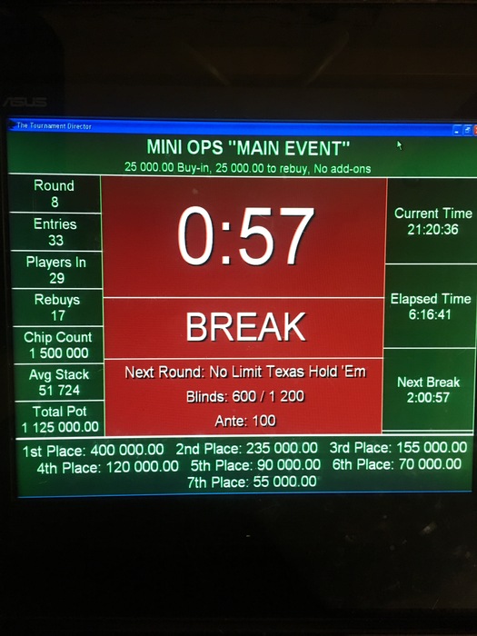 Закончился период поздней регистрации в MAIN EVENT по 25.000 В турнире приняло участие 33 человека, которые сформировали призовой фонд в размере 1.125.000 руб. Его распределение выглядит следующим образом