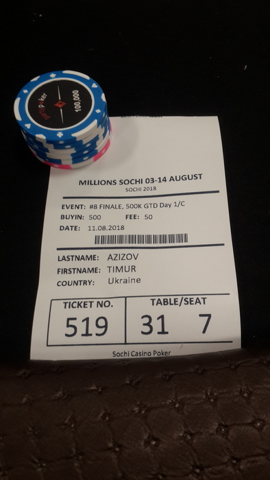 Стартовал финальный день Finale event 500К GTD, в игре 159/988 участников, идет 19левел играем до ТОР1 в формате 6 мах, блайнды 100-200К анте 200К, мой стек 12M=60bb(хороший,два средних) будем сражаться! ! !