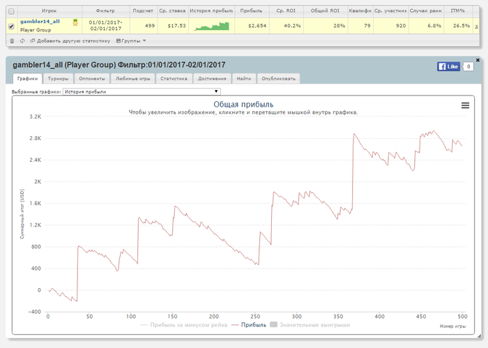 Вот примерно так выглядит график обычного парняги-работяги. Первую половину месяца играл очень хорошо, вторую половину - как кусок дерьма. Ну и сильно везло, чего уж там.