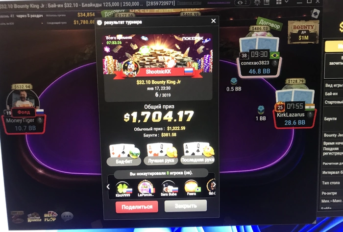 Турниры + 217. Отлично шёл в 15$ WSOPC и в топ 40 с 10 стеком против чипака QQ в КК по 35бб 🤷🏼