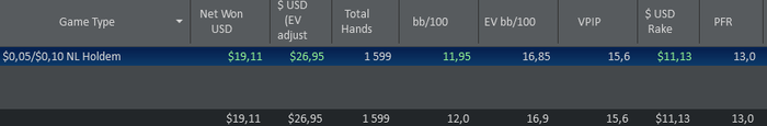 SB: $19.28 - VPIP: 52, PFR: 19, 3B: 9, AF: 1,8, Hands: 594