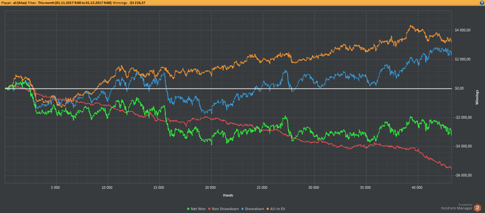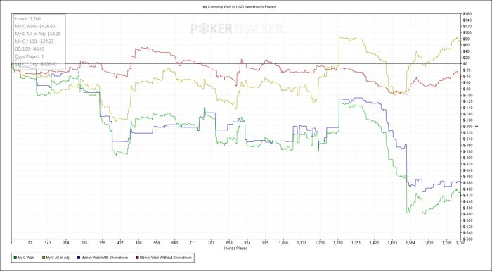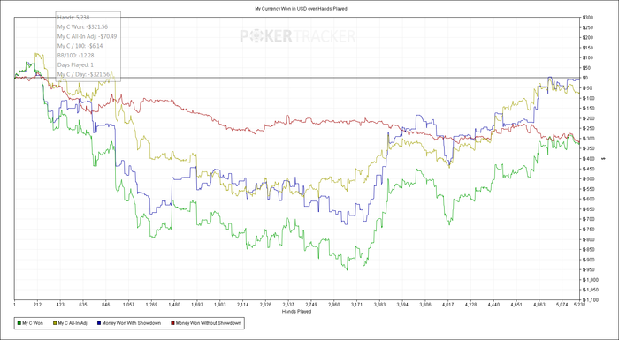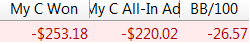 CO: $192.53 (VPIP: 53.13, PFR: 31.25, 3Bet Preflop: 0.00, Hands: 33)