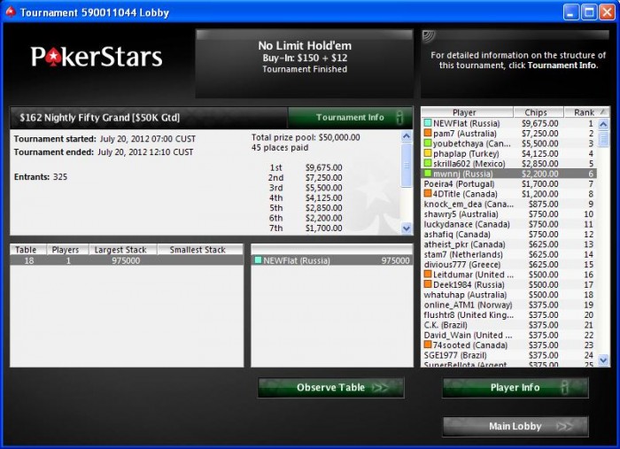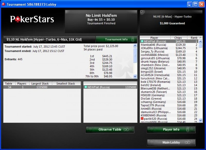Poker Stars $29.37+$0.63 No Limit Hold'em Tournament - t10/t20 Blinds - 2 players -