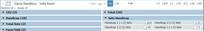Ещё насторожил тот факт, что при прогибе кефа на победу Бедене вырос кэф на фору (+1,5) по сетам, на того же Бедене.