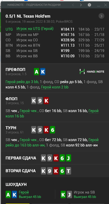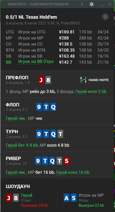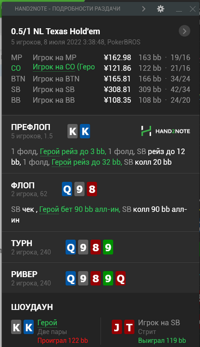 Просто 3 аута доехало за пот 500бб и мы поделили...