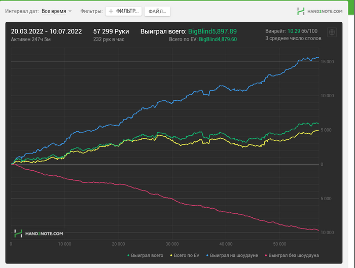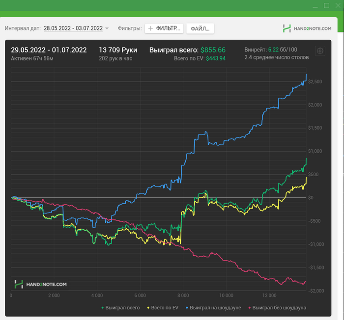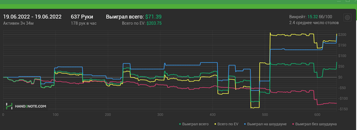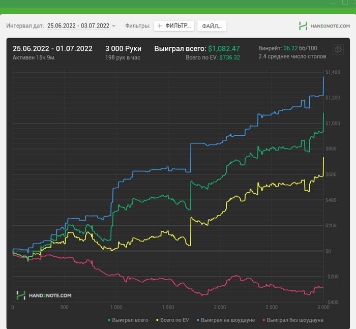 Отыграл 3ий пакет рук в фонде (~20к рук), с учетом того, как я его начал (с минуса около 300$), результат вполне норм