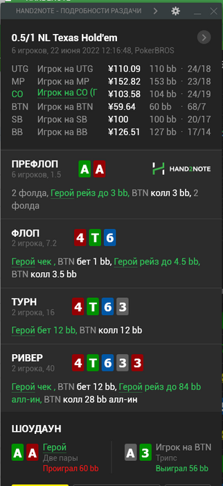 Сыграл тяжелую сессию против фиша 3бет 28%, улетел вначале сессии на ~300$, просто покидаю раздач: