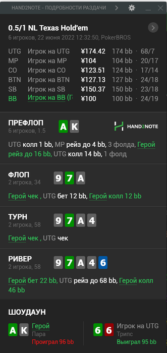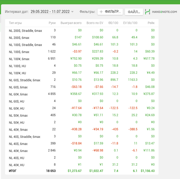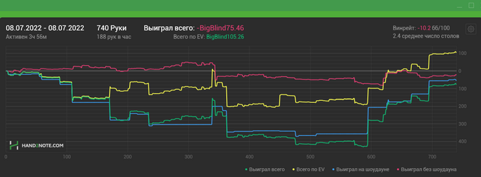 Ну офк я проблефовался в каре, да и блеф понятно вникуда, особенно ривер, терн все выбил, все карманки, часть может 10х, ривер только Ах фд выбиваю которых немного, на этом сессию закончил: