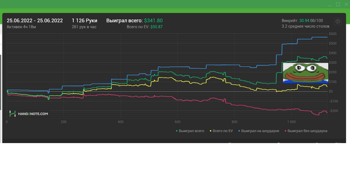Ну что ж, вести с полей нл100, сегодня отыграл жесть какую тильтовую сессию, но каким-то чудом вывел в конце в плюс, раздачи конечно жесть: