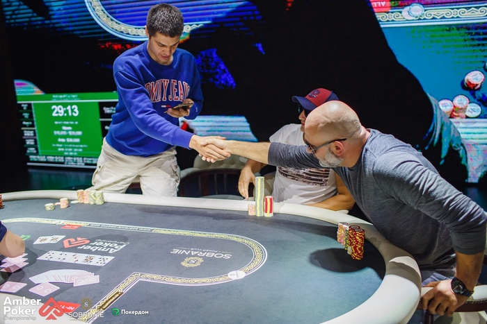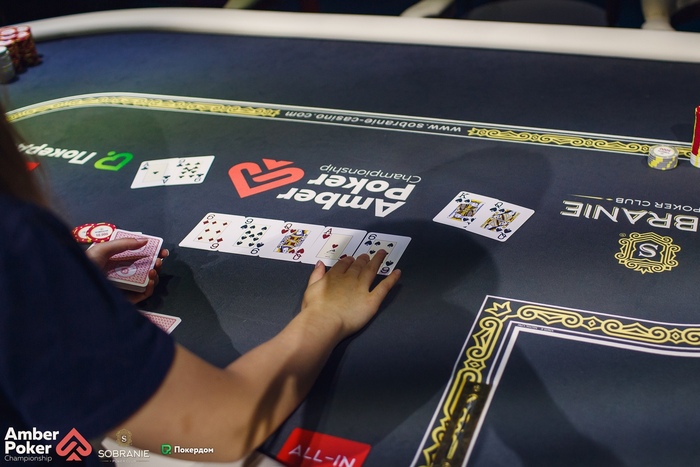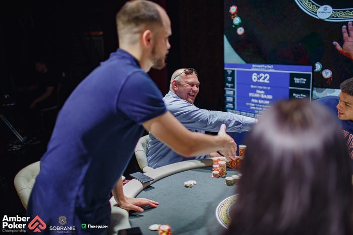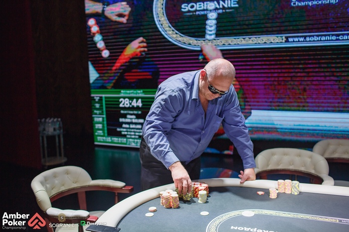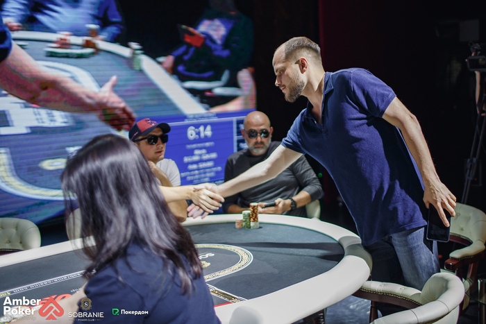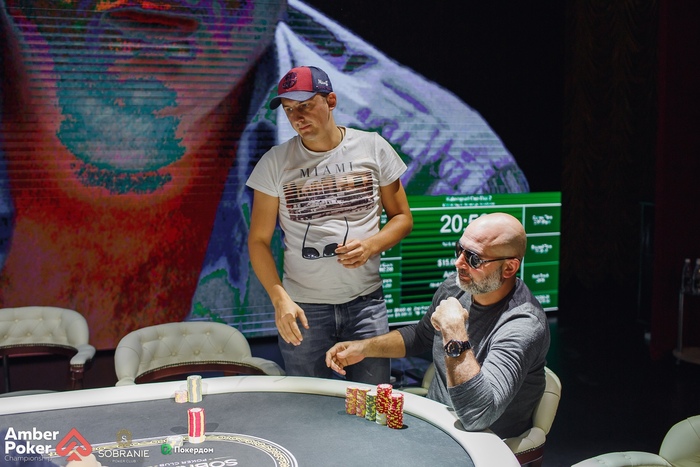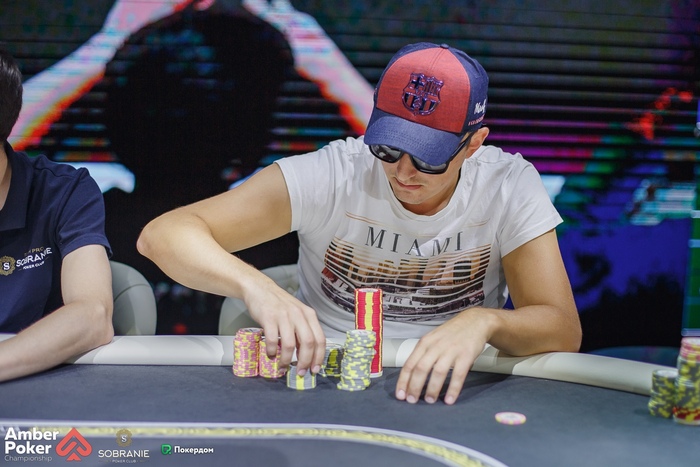 Бирюков из ранней открыл рейзом 1,500, а Калинин переставил на баттоне до 4,500. Бирюков доставил, чтобы посмотреть флоп, но сдался на ставку 5,000, увидев . Александр показал .