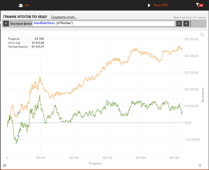 ПС. У меня по 250К рук получилась стоимость оллын кешаута 1.54 бб\100