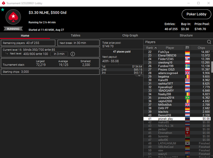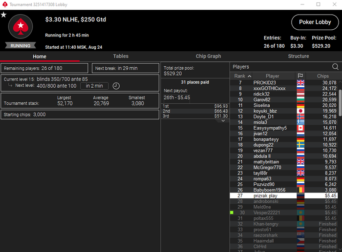 Epoxa55, Как бы все обратно не залить. День 23. Предфиналки летят пачками. Не дают пройти этот рубеж. Сессия -76.49$. Бр 850.03$. В банке 170$