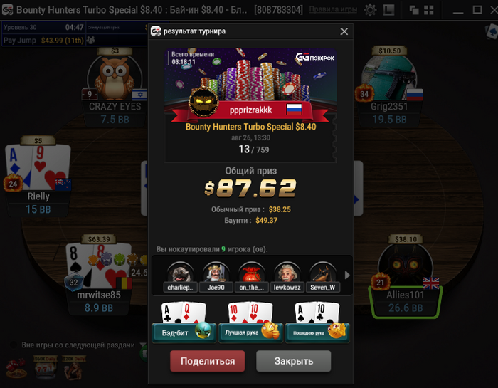 ppprizrakkk, покажи свои статы за 50000 рук последние . Интересно посмотреть .