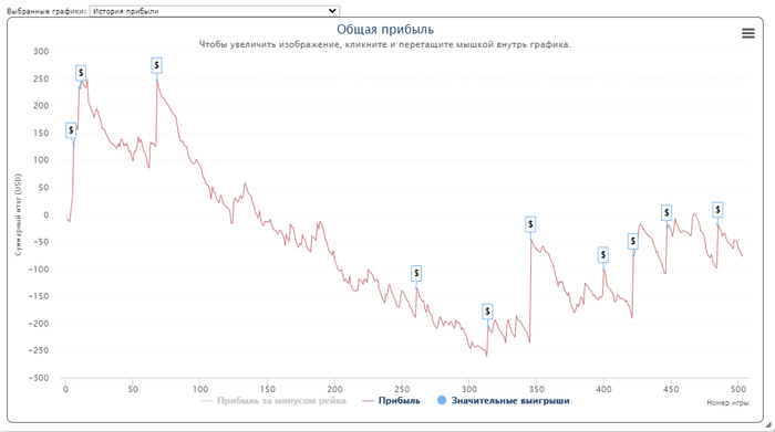 Лето подходит к концу. Результаты за месяц не радующие, давненько не было нулевых и минусовых месяцев. Но все не вечно, поэтому и я схватил свой небольшой даунстрик. Ну честно говоря, если так посмотреть, то нельзя сказать что это сильный даунстрик, но тем не менее, все равно не очень приятный момент. В целом лето прошло довольно удачно в плане игры, удалось забрать немного прибыли, получил много полезных знаний. Думаю осенью покажу результаты не хуже, а хотелось бы в разы лучше. Надеюсь в следующем сезоне будет подъем по лимитам, ну и конечно заносы, куда же без них. А так вот график игры за август, знаю что все любят смотреть чужие графики) Всем успехов, хорошей игры, фарту масти и поменьше бед-битов!