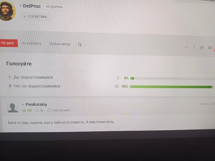 PanKotskiy @ 07.04.26Беги оттуда, парень, раз у тебя есть совесть. А она точно есть.