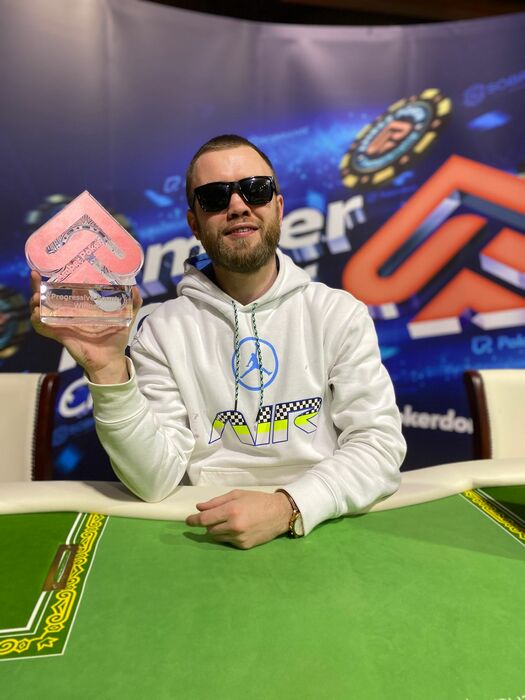 Егор Козлов взял третий кубок на сериях Amber Poker Championship, преуспев в турнире Progressive Bounty (до этого он выигрывал уже не проводимый Only 1 Re-buy на АРС-3 и АРС-4). В топ-3 была делёжка, по итогам которой игроки сохранили свои баунти и доиграли за 890 у.е.