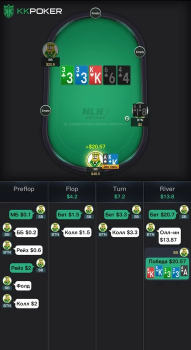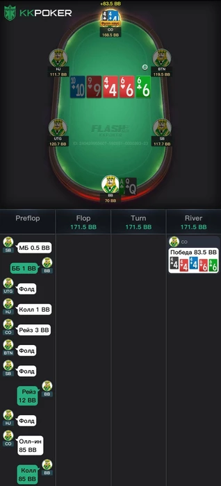 Вот интересно, когда у меня такой ран будет. А не с тузами в 4б поте смотреть на сет 44 в 3 вей.