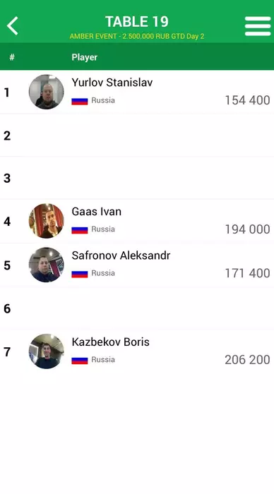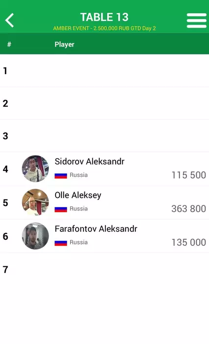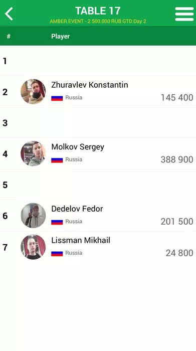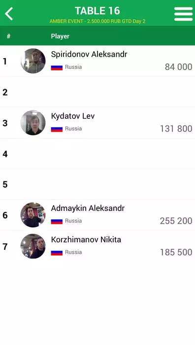 За другим столом на последней раздаче дня, Константин Журавлев поставил 5-бет олл-ин. Александр Качко, поставив 4-бет 22,000, выбросил карты в пас и оставил себе 40,000. Журавлев показал !