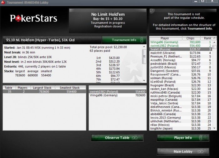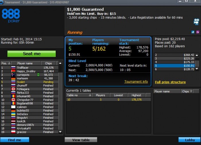 Очень хороший турнир с отличной структурой и отличными призовыми.