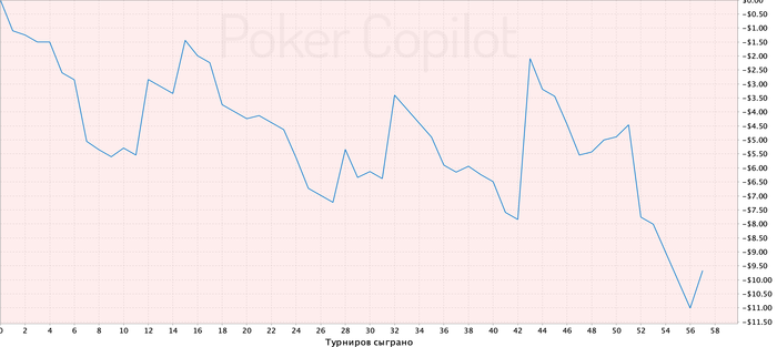 Наверное, буду постить сюда результаты каждую неделю, либо если что-то выиграю. Хотя выиграть что-то крупное вряд ли получится, ведь с таким БР я могу позволить себе разве что СНГ за 25 центов. Так что буду изредка разбавлять МТТ'шками за доллар — хоть какой-то намёк на надежду появится.
