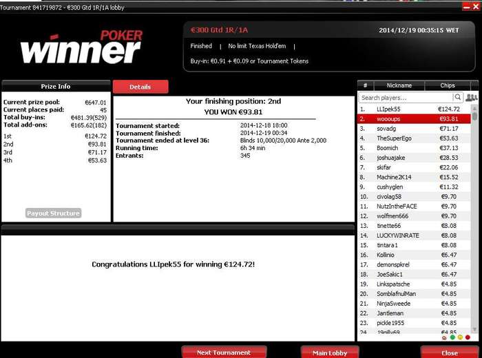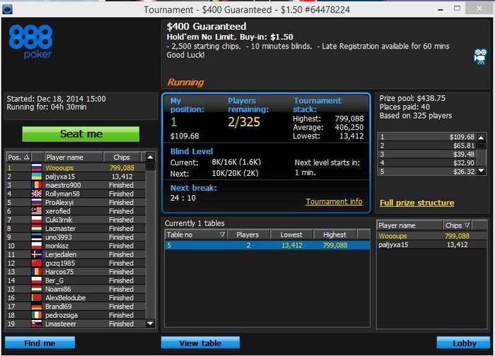 в ХА вышел 20>80бб против единственного русского адекватного агрессивного. пёртый сук конечно :( В 4махе боролся как лев с шортстеком, где проиграл большой банк слабому, по тёрну не выкинул хотя почти(!!!) выкинул)) Буду выкидывать, честно. В 4махе этот пёртый тип всех троих и ушатал будем считать что вторая попытка распечатать Айпокер удалась, хоть и не весомым заносом, но финалка и топ 2 тоже очень приятны душе и воодушевляют Хоть что-то выиграл за последние дни, а загрузка была супер-лайт
