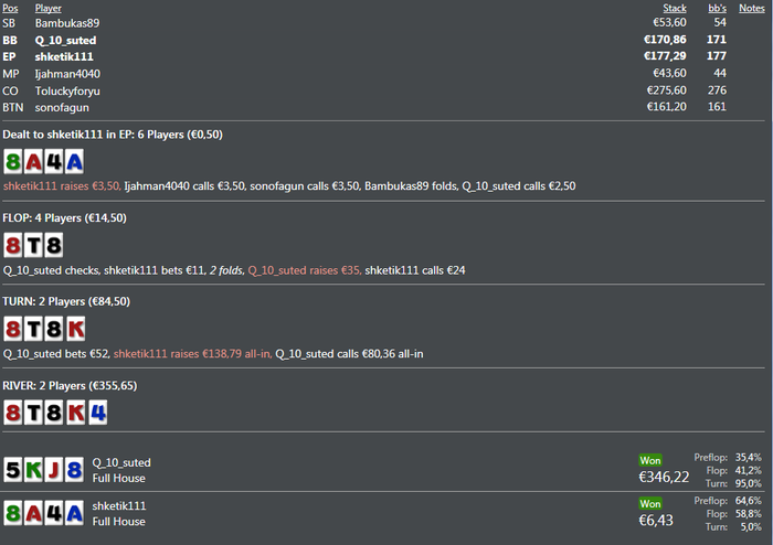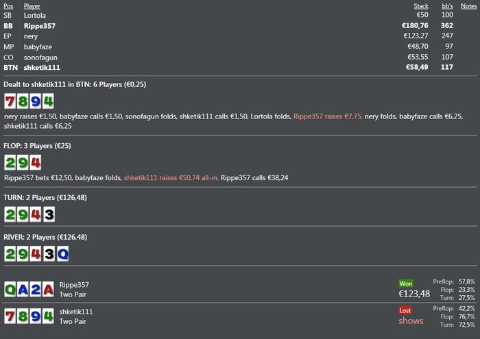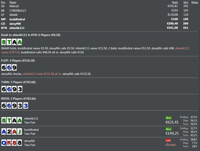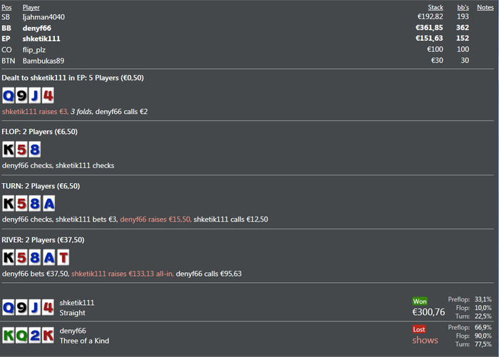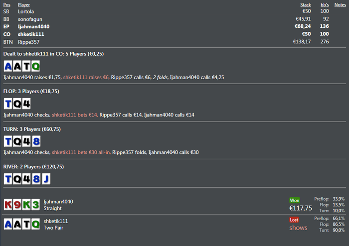 ну мені теж заходило хоча тянув не пошансах ... але це знову ж таки проти того фіша в якого виграв самий більший спот поки ) ну тут просто класно получилось)