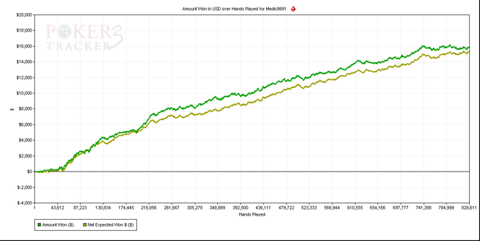 Ради интереса даже собрал все вместе, вот все лимиты нл25 бакс и евро,дипы нл25 и пл 25-50 в этом году,играл еще пл 100-200 они в плюс с 8бб,но убрал так как сейчас не играю и зум убрал там по факту небольшой минус с недобором. Пока все еще грешу на выброс диспы,так как мой селект не изменился,с регами особо не зарубаюсь, фишей на этих лимитах дофига что регулярных что залетных,не думаю что поле усилилось за эти месяцы в этом плане,их точно меньше не стало, во всяком случае на 15 столов всегда можно найти сладких.Из играемых сейчас опять же нет какой-то провальной разновидности все в плюс с хорошим винрейтом,то есть отключать что-то нет смысла. Недоборы кстати особо никогда не парили,это часть игры,тем более на общем все четко,реально значимые остались на тех лимитах что не играю нл50-100,зум нл25-50-100, а тут даже раньше оказывается был небольшой перебор к моему удивлению. Для меня вывод надо катать-катать-катать.....И конечно зимой надо заняться теорией с кем-то так как вопросов накопилось куча по бсс,а с учетом что у меня в жизни достаточно жесткий график,нет то сил то времени самому освоить,.да и займет это явно дольше.
