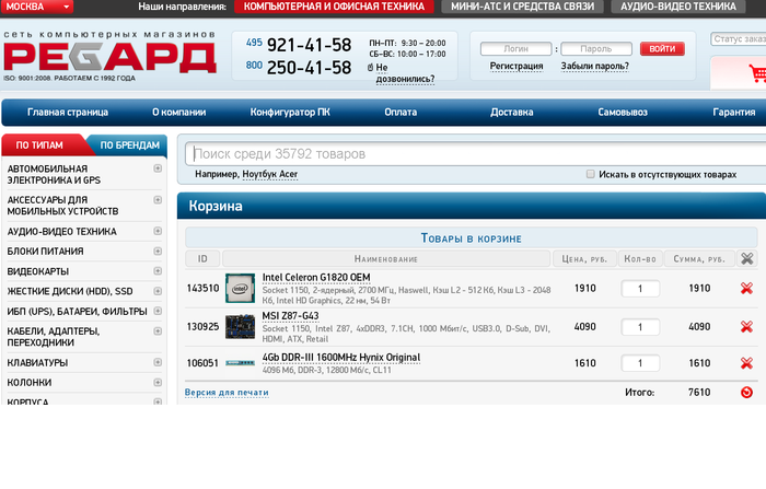 з.ы.есть возможность заказать железки из питера