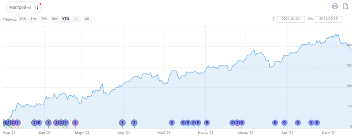 Продолжаем терять, при том падают именно американские компании, в том время как на Российском рынке ещё идёт прирост. Доходность упала уже до 20.17% , что в целом всё равно заебись.