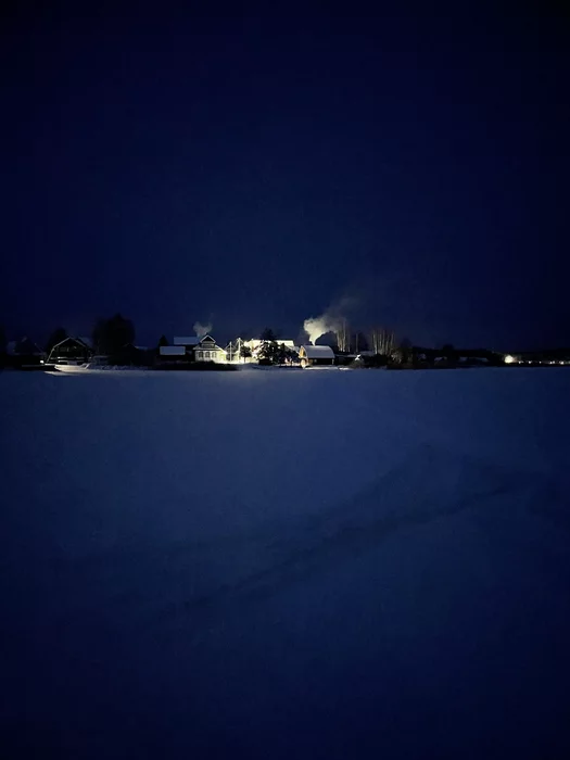 Ночная деревушка, сказочно там, рыбакам советую. Деревня Заплавье, добираться туда по зиме дело не простое, Москвичей благодаря этому в том месте пока мало, на льду очень просторно 😁