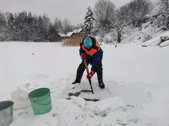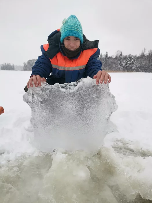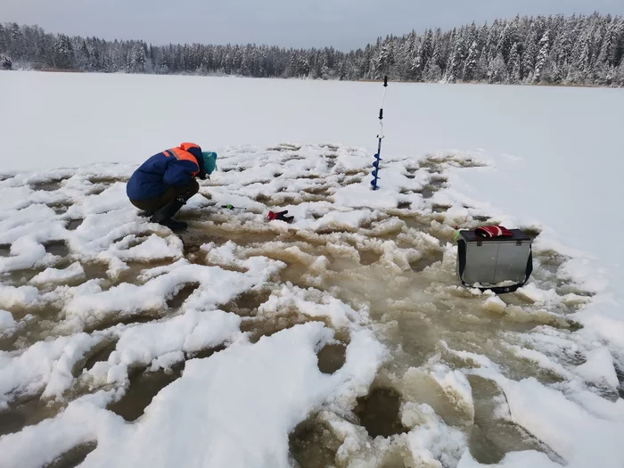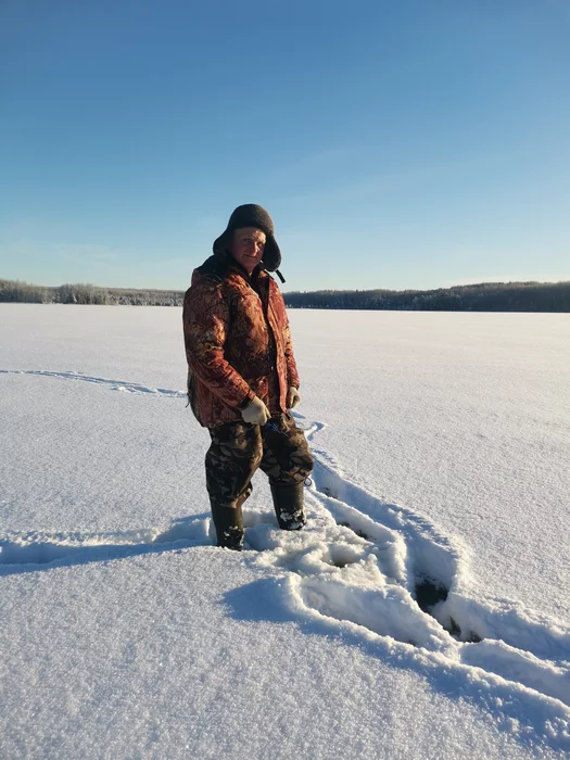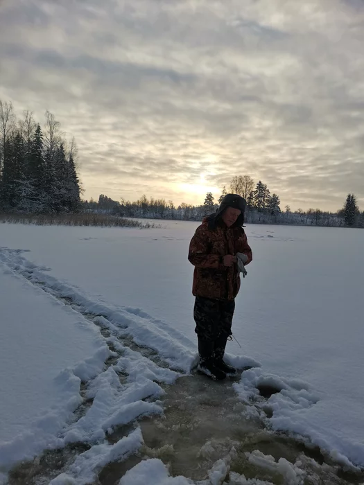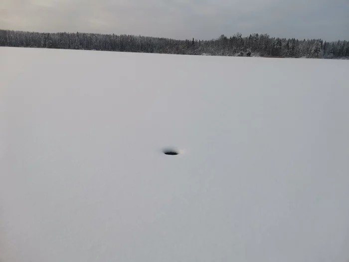 Эта лунка не замерзающая-промоина-близко нельзя подходить-провалишся! И вообще-зимой лучше одному не рыбачить-особенно подальше от дома!!
