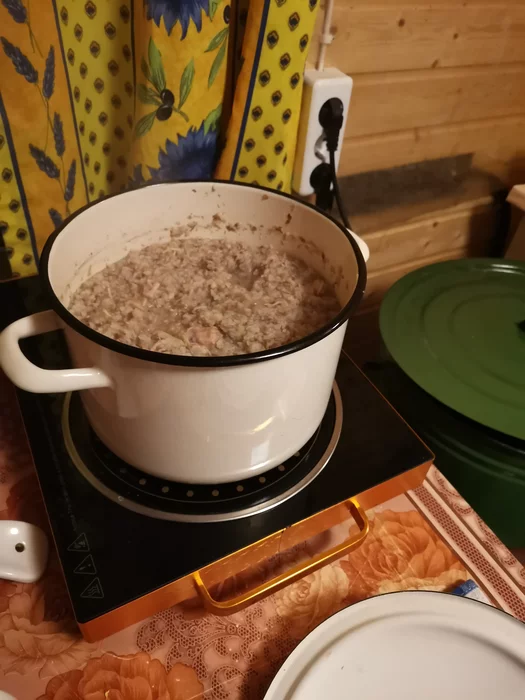 Наварили супу восьмилитровую кастрюлю-хватило ровно до 9 числа как раз)) и гречу с тушонкой! (два раза делали)